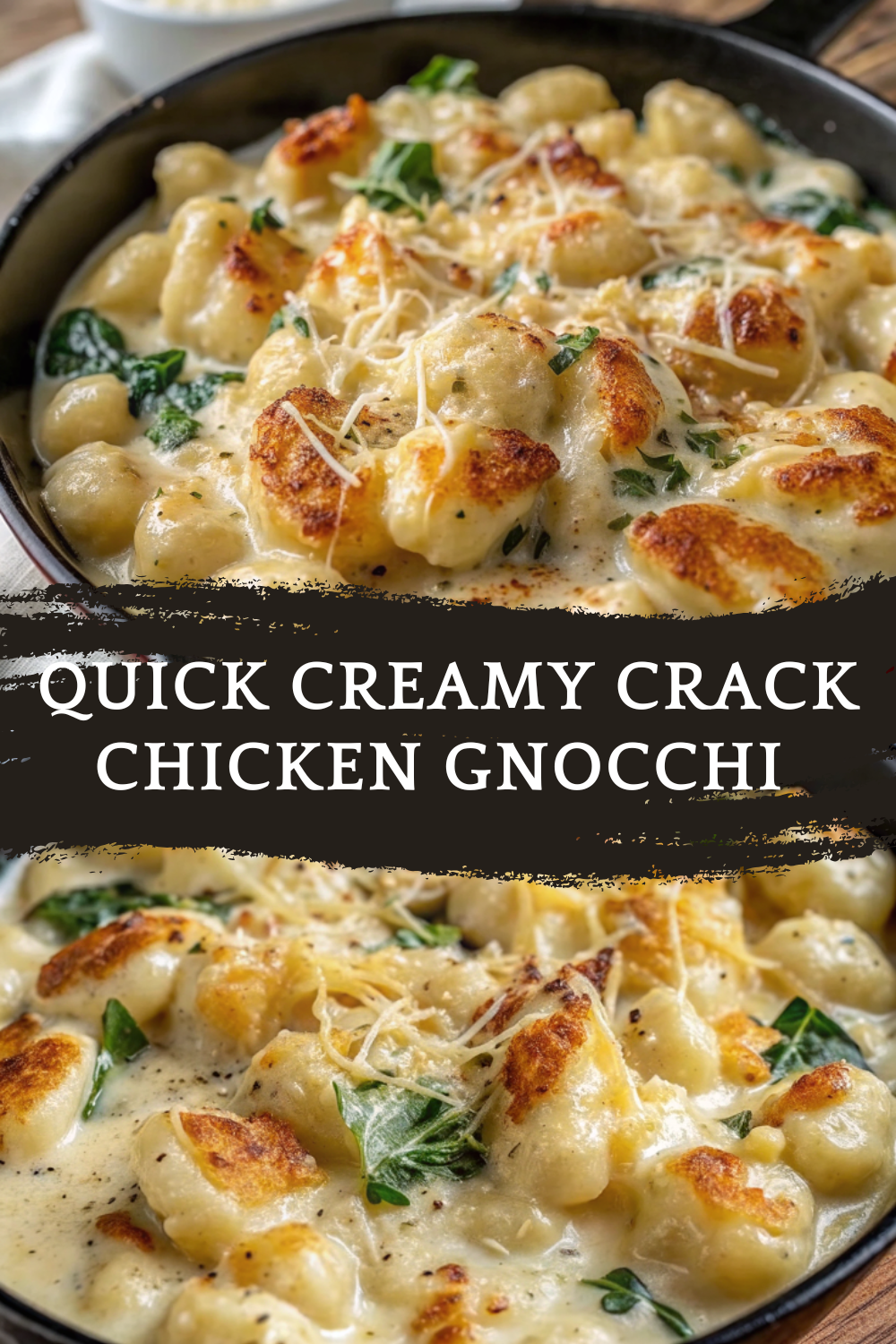 When it comes to the ultimate comfort food, few dishes can compete with a creamy, cheesy, and flavor-packed meal that comes together in one pan. Enter Quick Creamy Crack Chicken Gnocchi — a hearty, soul-warming dinner that’s rich, satisfying, and surprisingly easy to make.This dish combines tender pieces of juicy chicken breast, fluffy gnocchi, savory herbs and spices, and a luscious cream cheese and cheddar sauce that coats every bite in pure deliciousness. The fresh spinach adds a pop of color and nutrition, balancing out the creamy richness beautifully.Best of all, it’s a complete meal that can be ready in less than 30 minutes — perfect for busy weeknights, cozy family dinners, or when you just need a bowl of something comforting and delicious.This Quick Creamy Crack Chicken Gnocchi has everything you love: it’s creamy, cheesy, flavorful, and oh-so-satisfying. Once you try it, it’ll quickly become one of your favorite go-to dinners for any season!